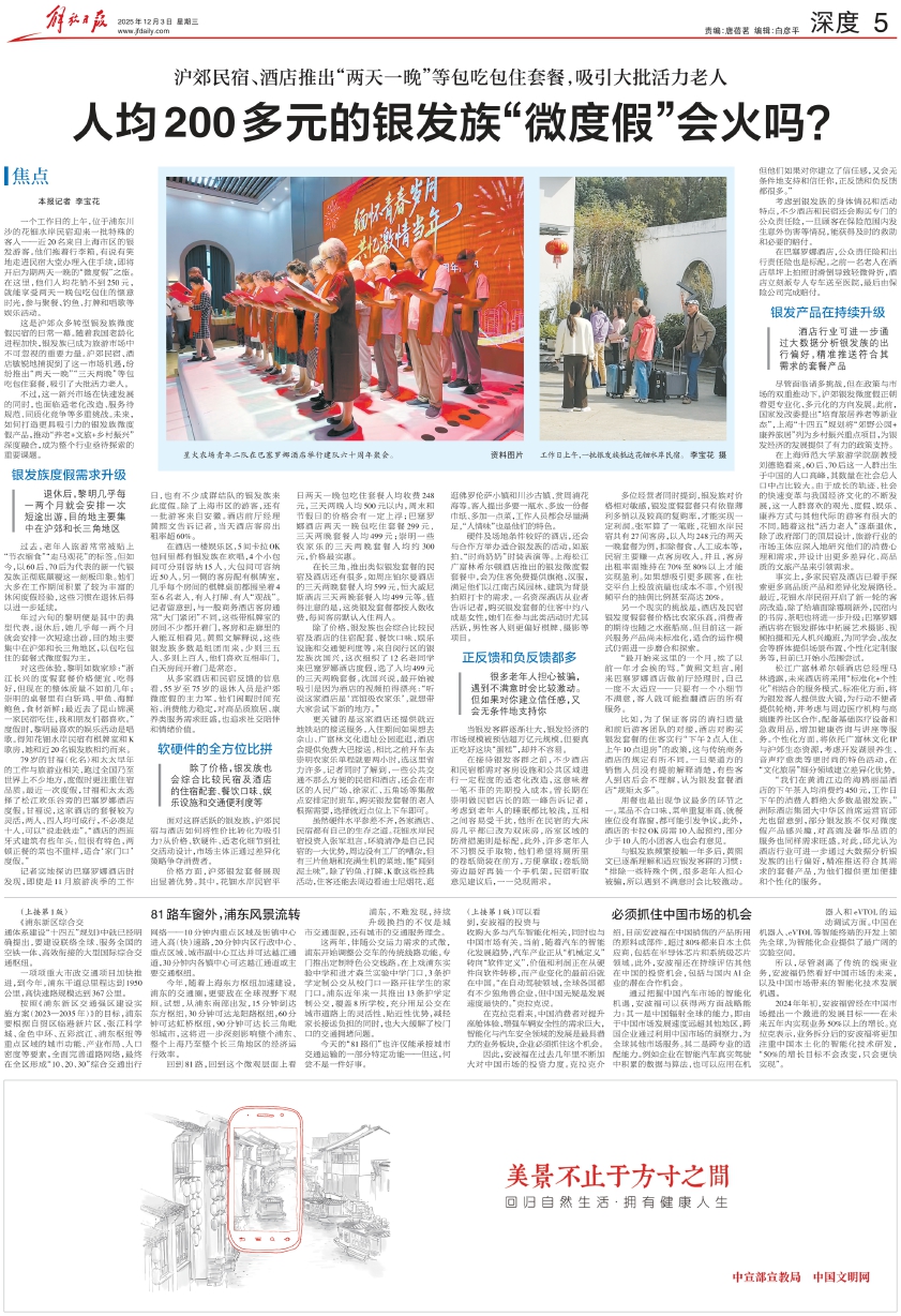 解放日报(版面头条):沪郊民宿、酒店推出“两天一晚”等包吃包住套餐,吸引大批活力老人 人均200多元的银发族“微度假”会火吗?