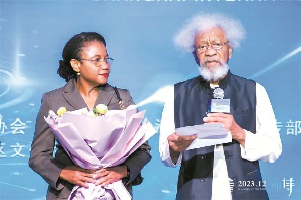 索因卡在夫人陪伴下领取“金玉兰”诗歌大奖