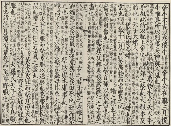 “中华再造善本”影印宋刻余氏万卷堂本《礼记》书影。这段关于蜡祭的记载中反复评价这一祭典“仁之至,义之尽也”,即后世成语“仁至义尽”的语源。