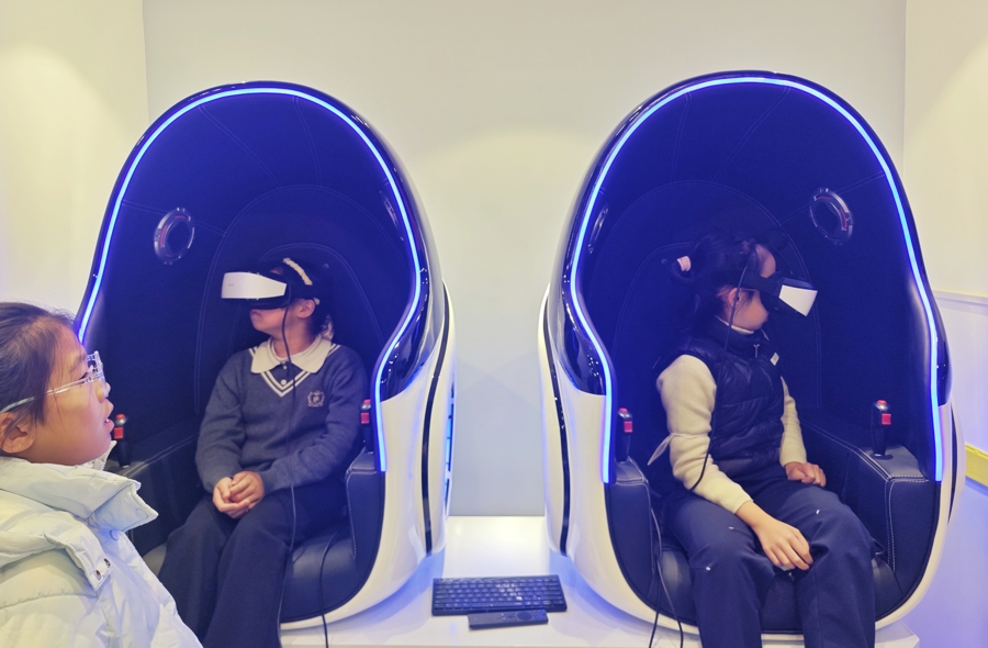在曹杨实验小学点位,小朋友在VR体验 摄影:陶磊