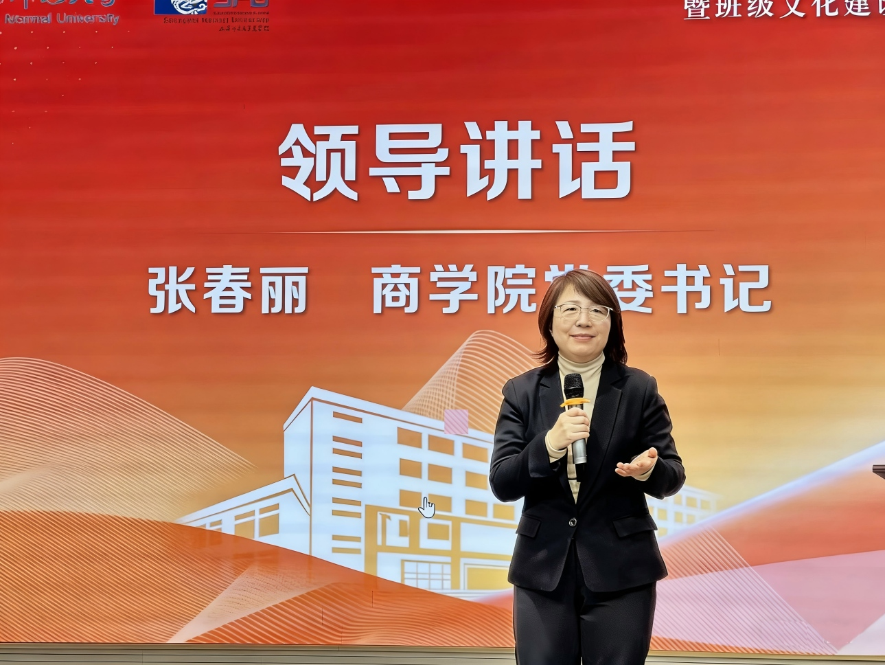 商学院党委书记张春丽以“五扇成长之门”生动比喻学院五大导师团。她指出,学院前期深入调研、精准把握学生成长需求,为大家量身打造五大导师团,目的就是为更好托举学生健康成长成才。她鼓励同学们根据自身发展需要,主动叩响属于自己的成长之门。同时,学院建立“育人导师+学生联络员”双向联动机制,由班委担任联络员,畅通师生沟通渠道,确保学生诉求快速响应、精准对接解决,为同学们的成长成才做好全方位兜底保障。