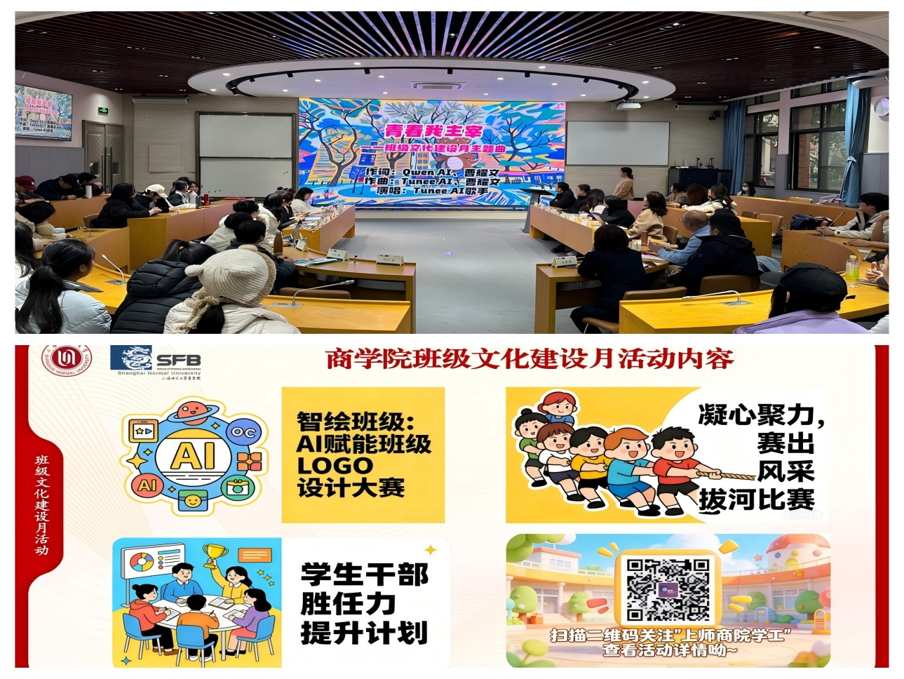 对接仪式结束后,商学院班级文化建设月活动同步启动。本次建设月将陆续开展AI赋能班级LOGO设计大赛、拔河比赛、学生干部能力提升计划等系列活动,旨在进一步增强班级凝聚力与集体荣誉感,为同学们打造温暖相伴、共同成长的青春港湾。