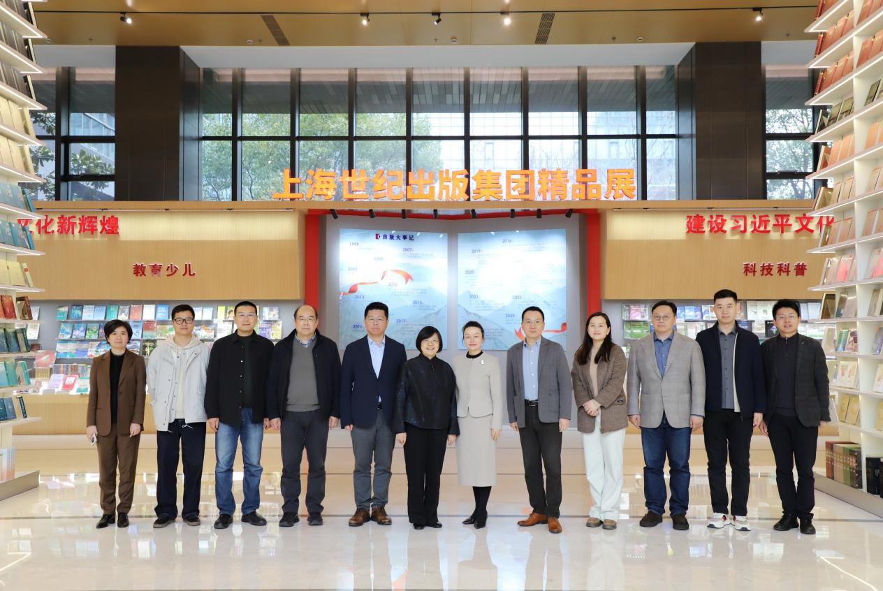 上海世纪出版集团党委书记、董事长张鸣对学校一行的到来表示欢迎,并陪同上海师范大学师生一行参观了上海世纪出版集团精品展。在出版成果展示区,从厚重的《辞海》《汉语大词典》到各类精品主题出版物、学术著作,生动呈现了集团从“有组织的出版”到推动“有组织的科研”、从传统出版到融合发展的战略布局。通过沉浸式参观,师生对出版产业的时代使命、运作流程及前沿探索有了直观而深刻的认识。