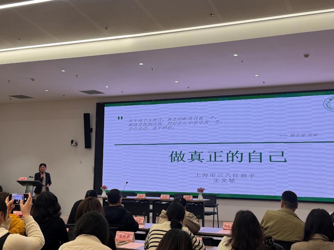 为充分发挥巾帼榜样的示范引领作用,激励全校广大女教职工与女大学生立足岗位、奋勇争先,3月27日下午,由校妇委会、校女优青联谊会主办的“巾帼讲堂·最美奋斗者风采展示”活动在奉贤校区新大学生活动中心B108多功能厅顺利举行。校区管委会、教师工作部、学工部、团委等部门相关负责人,哲法学院、建工学院、旅游学院、四附中等书记、工会主席代表,以及校妇委会、校女优青代表、女教师代表、女大学生代表等齐聚一堂,共同聆听巾帼奋斗故事,汲取奋进力量。活动由校女优青会副会长姜杉主持。