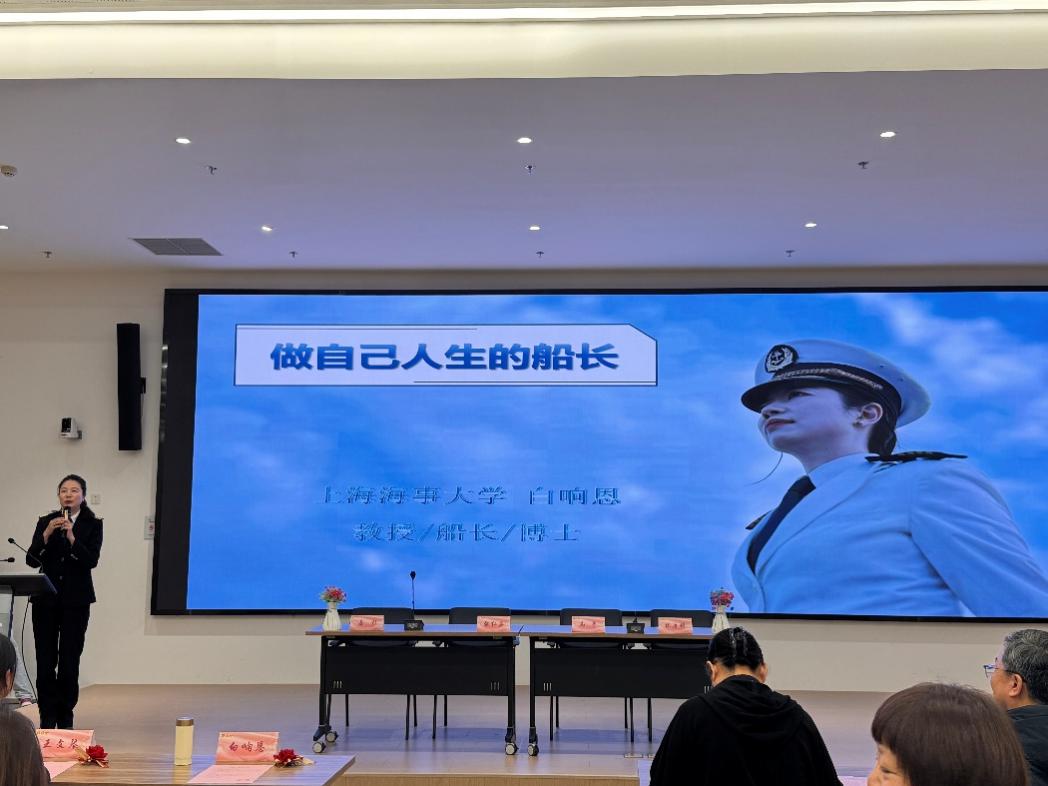 全国三八红旗手、上海海事大学教授、船长白响恩从自身成长经历出发,讲述了她从一名普通女大学生突破性别壁垒、成长为中国首位穿越北冰洋的女航海驾驶员的传奇历程,生动展现了新时代女性不畏艰险、勇毅前行的精神。她还结合专业知识,向在场师生科普了航海领域的前沿知识与行业现状,并分享了自己在教学一线深耕细作、培育航海人才的实践与感悟,让大家在聆听故事的同时,也感受到了海洋科学的魅力与教育的温度。