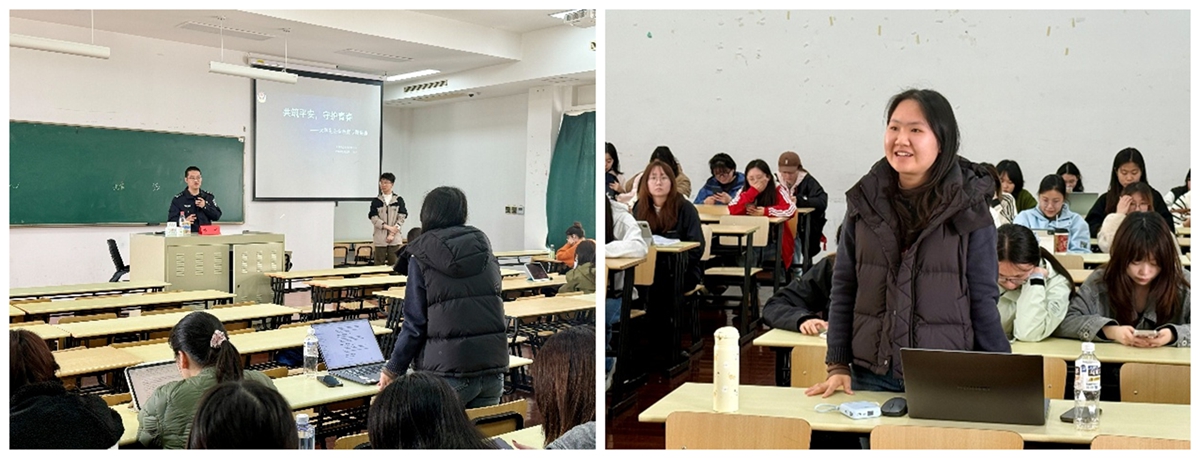 互动交流环节,张宁针对同学们提出的“被骗后如何有效补救”“日常生活中如何增强安全防范意识”等问题逐一解答,给出了具体实用的建议。他勉励同学们将安全知识内化于心、外化于行,不仅要提高自身警惕性,更要在遇到可疑情况时沉着应对、及时求助,同时注意校园交通、宿舍防火等日常安全细节,共同守护平安和谐的校园环境。