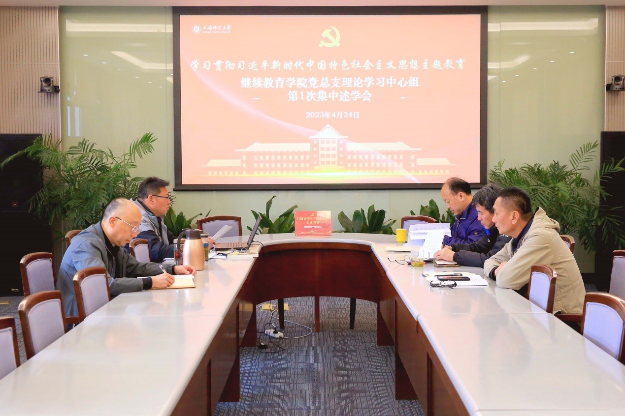 4月24日下午,继续教育学院党总支理论学习中心组在学院301会议室召开学习贯彻习近平新时代中国特色社会主义思想主题教育第一次专题研讨会和第一次述学。