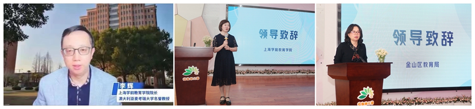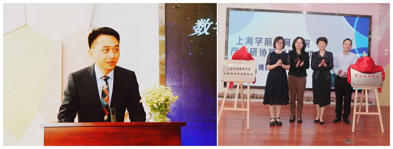 4月18日上午,“数字赋能 启智成长”上海学前教育学院产教研协同创新基地揭牌活动在上海市金山区临潮幼儿园举行。上海学前教育学院院长李辉以视频方式为活动致辞。金山区教育局局长郑瑛,上海学前教育学院副院长李燕、上海学前教育学院副教授黄立安,金山区教育学院院长袁晓英,金山区教育局副局长方德平,金山区教育局、教育学院相关科室负责人等出席了本次活动。