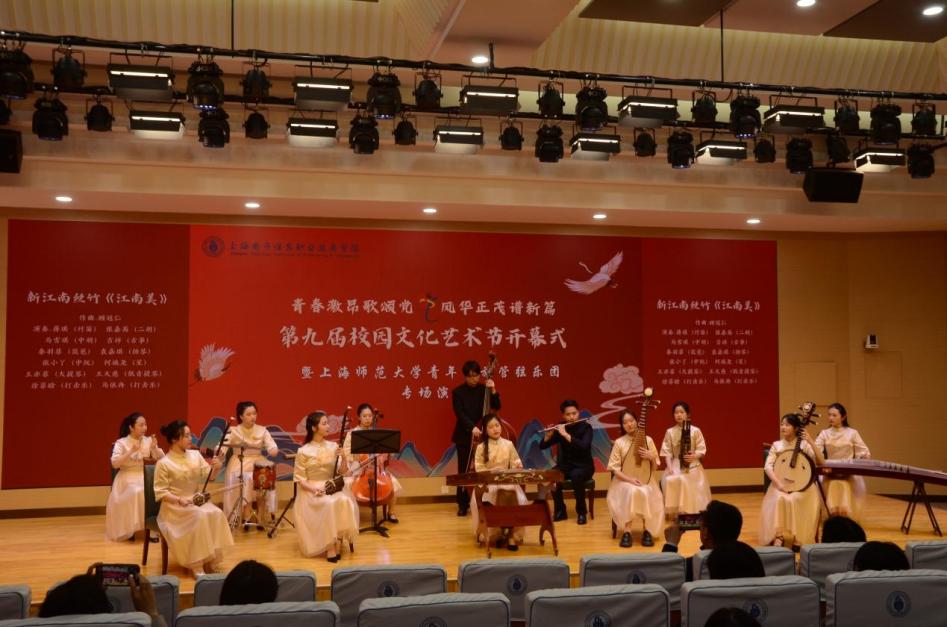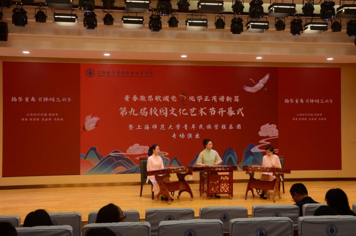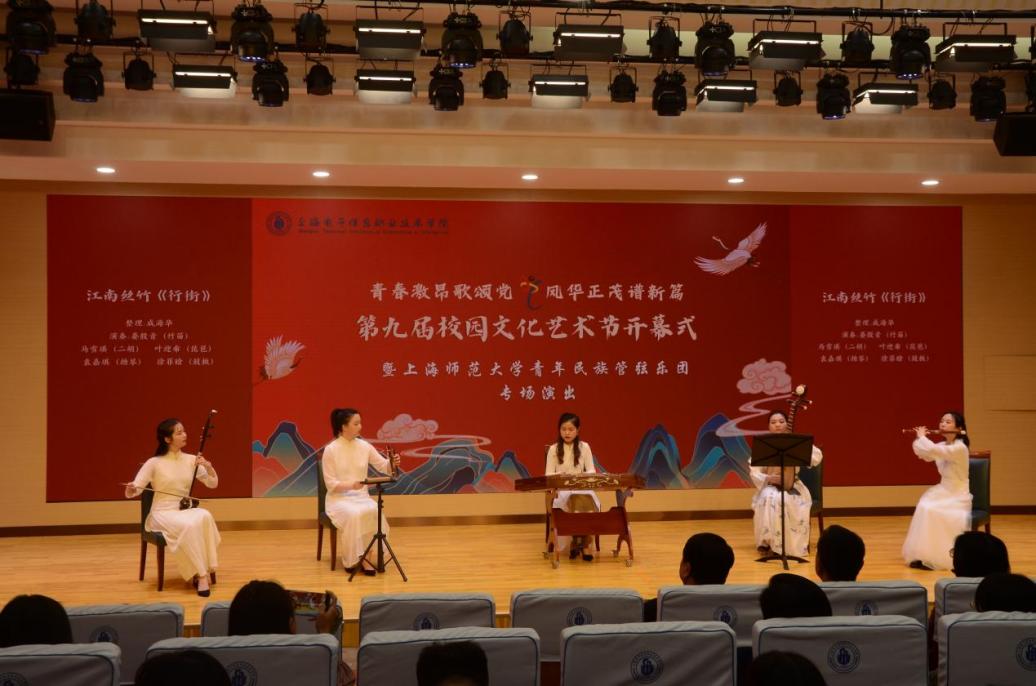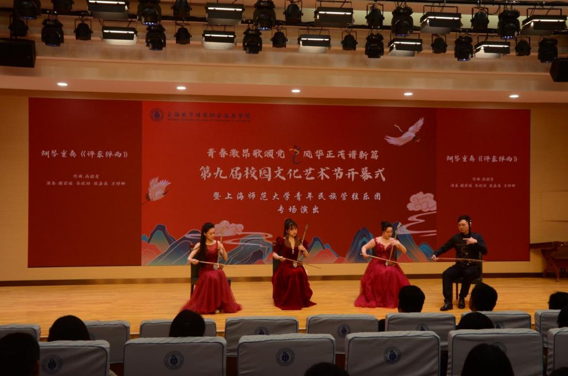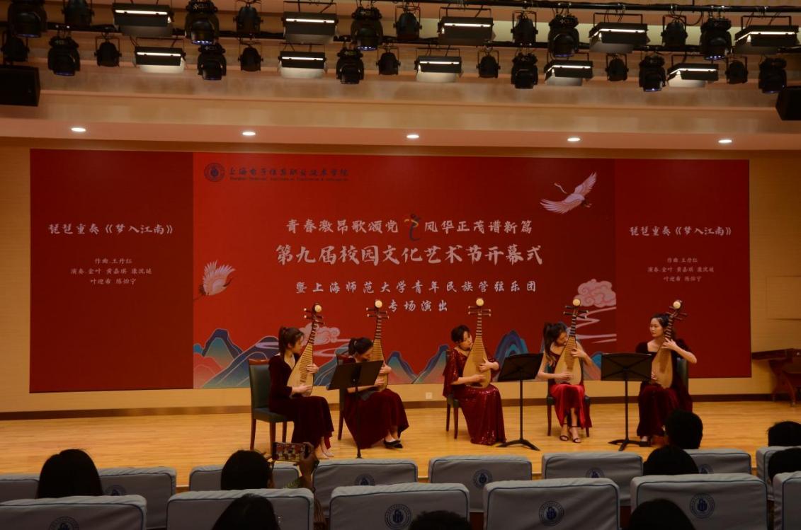 4月21日下午,我校青年民族管弦乐团受邀参加上海电子信息职业技术学院第九届校园文化艺术节开幕式暨“高雅艺术进校园”活动。演出的成功既充分展示了乐团“传承民族艺术,弘扬中华优秀传统文化”的理念,展现了乐团团员的精神风貌与我国民族管弦乐艺术的风采,又充分发挥了校园文化艺术在提高学生审美和人文素养方面的独特作用,把高雅艺术进校园活动作为学校美育培根铸魂的重要载体。