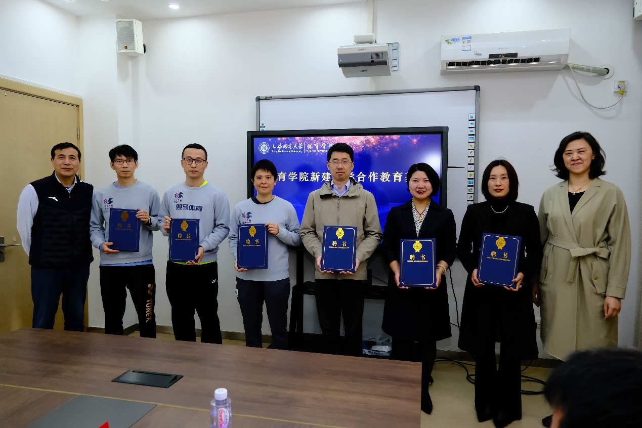 体育学院副院长张元文,副院长马瑞为新建产学合作教育基地单位兼职导师颁发聘书。