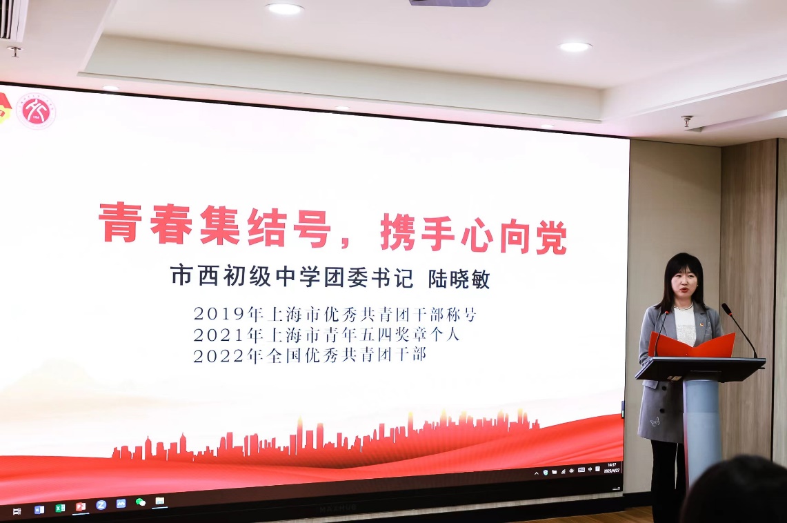 人文学院2004级中文系校友、全国优秀共青团干部、上海市青年五四奖章获得者、上海市市西初级中学团委书记陆晓敏作《青春集结号,携手心向党》主题分享。她介绍了市西初级中学党团队工作一体化开展情况,期待能与人文学院团委共同就创新团课、挖掘党史故事等方面作出新尝试,共同助力共青团员和少先队员茁壮成长。