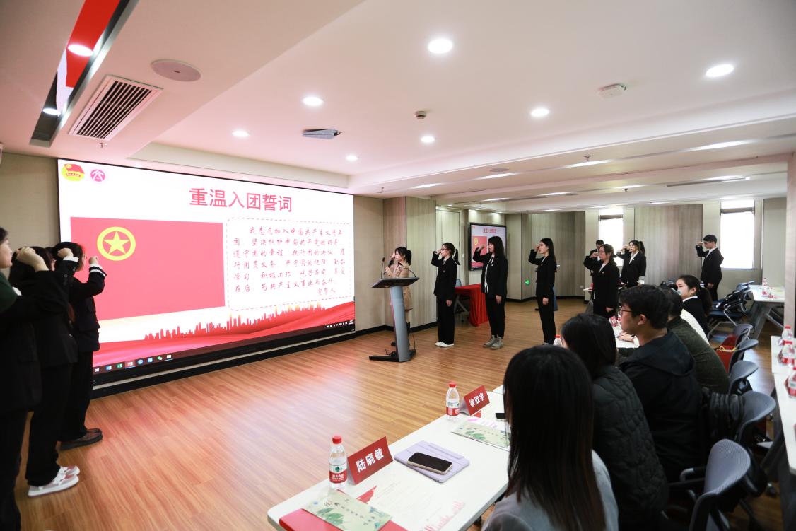 人文学院团委副书记梁佳瑄带领与会团员重温入团誓词。整齐响亮的宣誓声回荡在会场,大家纷纷表示,要积极履行团员义务,勤奋学习、踏实工作,争做新时代优秀团员。