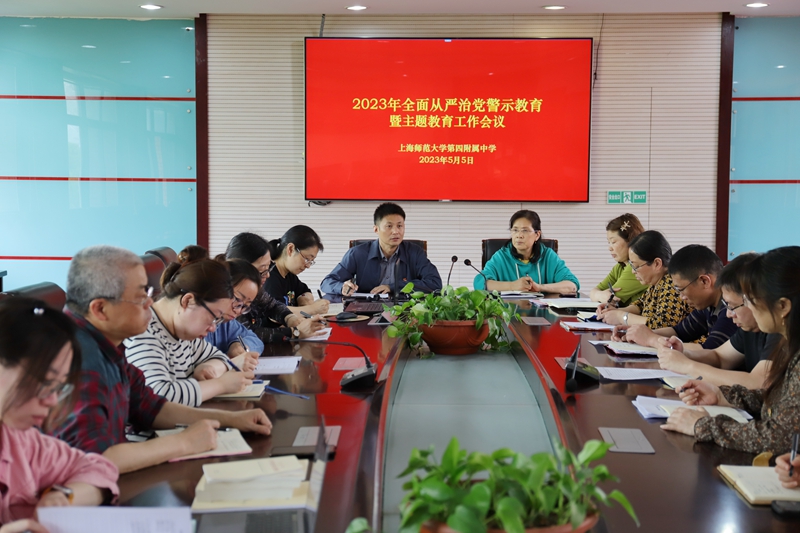 5月5日,四附中召开2023年全面从严治党警示教育暨主题教育工作会议。学校领导班子成员、党总支委员、党支部书记、全体中层干部参加会议。