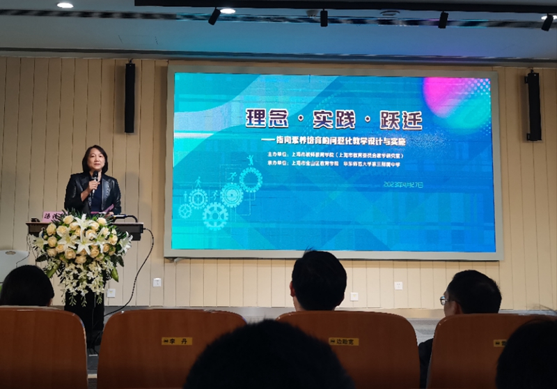 4月27日下午,我校数理学院物理师范团队教师张敏、杨建文带领2022级学科教学(物理)研究生和2020级部分物理学(师范世承、师范)本科生参加了由上海市教师教育学院、金山区教育学院主办的以“理念•实践•跃迁”为主题的“问题化教学”展示与研讨活动。本次活动由上海市教委教研室物理教研员、特级教师、正高级教师汤清修组织并主持,在华东师范大学附属第三中学开展。活动由“教学展示”“微论坛”“交流讨论”“专家点评”四个环节组成,内容丰富精彩,同学们受益匪浅。