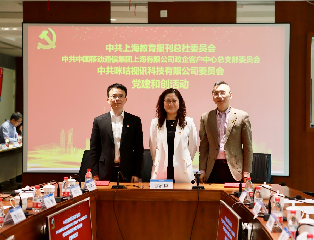 为筑牢信仰之基、补足精神之钙、把稳思想之舵,充分发挥基层党组织的主体作用,激发党员的活力, 4月27日,中共上海教育报刊总社委员会、中共中国移动通信集团上海有限公司政企客户中心总支部委员会、中共咪咕视讯科技有限公司委员会三方共同开展了“党建和创”活动,并签订了党建共建协议。