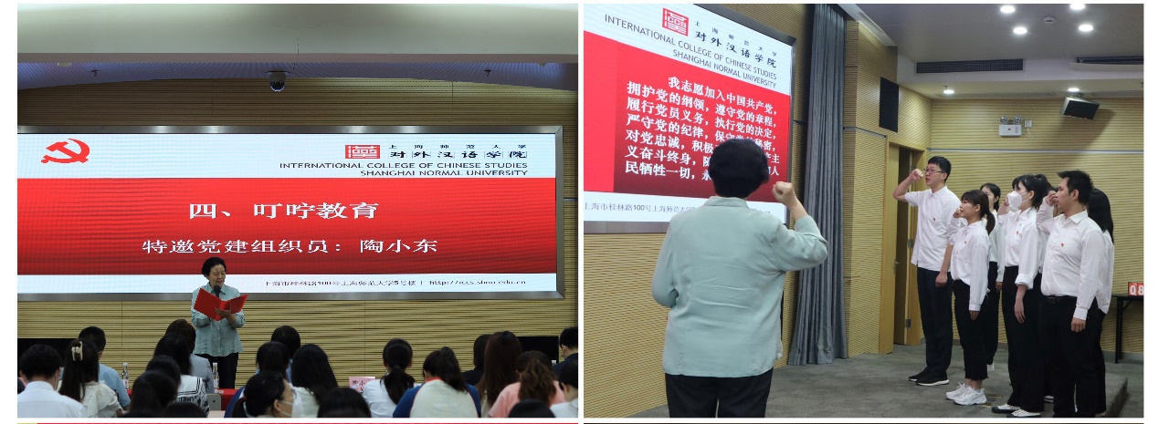 红色血脉赓续绵延,初心使命历久弥坚。临近毕业,对外汉语学院特邀党建组织员、退休教工党支部书记陶小东老师为即将踏入社会的毕业班党员作叮咛教育,希望毕业生党员牢记入党誓词,不断重温、时刻对照、深刻自省,从中汲取加强党性修养的不竭动力。新时代、新征程,所有党员都要初心不改,一往无前。入党誓词,是党员对党和人民作出的庄严承诺。在陶老师的带领下,全体党员高举右手庄严宣誓,声音铿锵有力。通过重温入党誓词,党员们将时刻牢记党员身份,保持党的优良传统,坚定理想信念,永葆党员本色,以实际行动恪守对党的庄严承诺。
