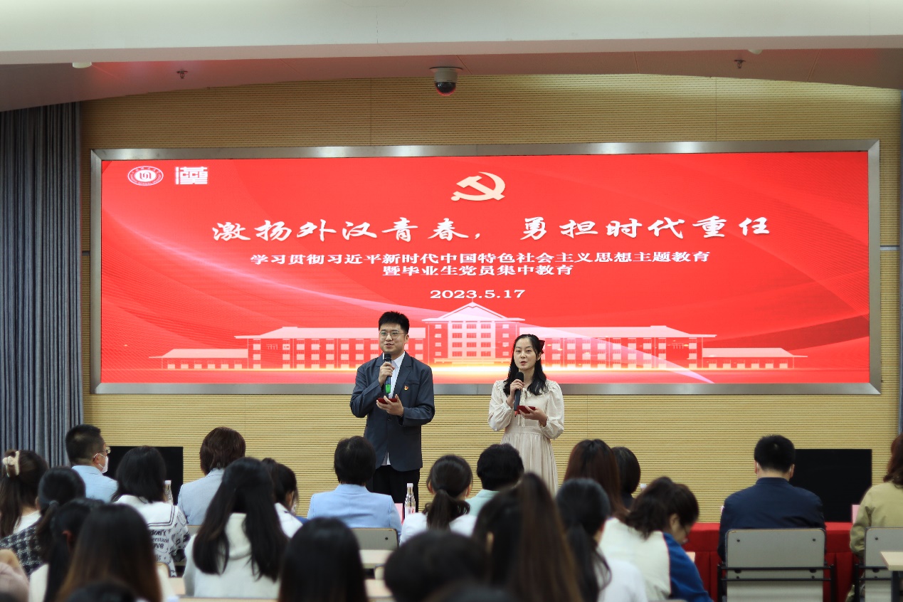 为认真做好毕业生党员集中教育,引导学生党员正确认识时代责任和历史使命,以良好的党性修养和过硬的政治素质走向社会。5月17日下午,对外汉语学院“激扬外汉青春,勇担时代重任”2023届毕业生党员集中教育活动在徐汇会议中心二号报告厅举行。此次教育活动紧扣学习贯彻习近平新时代中国特色社会主义思想主题教育总要求,学思践悟聚奋进之力,踔厉笃行谱学院新篇。对外汉语学院党政班子成员、全体党委委员、教工党支部书记、特邀党建组织员、辅导员以及全体学生党员参加了活动。