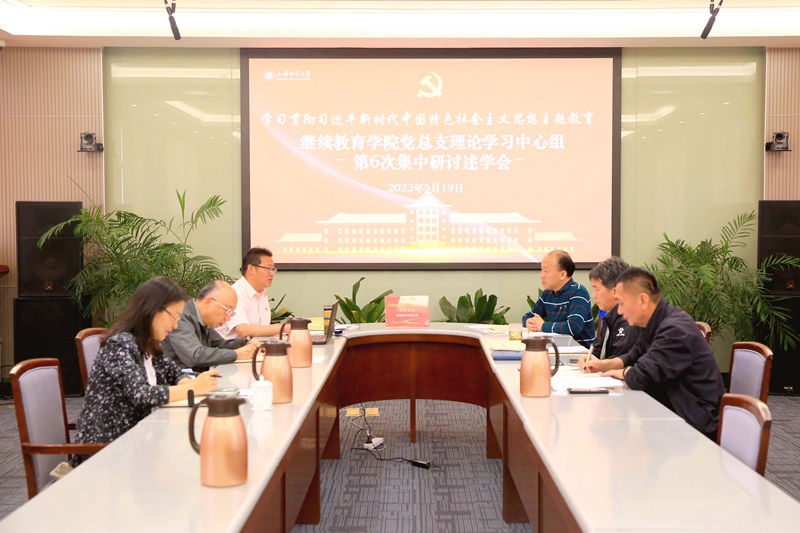 5月19日上午,继续教育学院党总支理论学习中心组在学院301会议室开展“学习贯彻习近平新时代中国特色社会主义思想主题教育”第六次专题研讨和述学。此次学习研讨述学围绕“坚持人民至上,实现好、维护好、发展好最广大人民根本利益”,深入学习习近平总书记考察上海重要讲话精神和对上海工作重要指示批示精神,与会党政班子成员结合各自工作实际,开展个人述学及学习心得交流分享。党总支书记金国忠主持会议,第一指导组夏洁同志到会指导。