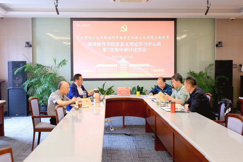 5月19日下午,继续教育学院党总支理论学习中心组在学院301会议室开展“学习贯彻习近平新时代中国特色社会主义思想主题教育”第七次专题研讨和述学。此次学习研讨述学围绕“习近平新时代中国特色社会主义思想的世界观和方法论”,深入学习习近平新时代中国特色社会主义思想的世界观和方法论,与会党政班子成员结合各自工作实际,开展个人述学及学习心得交流分享。党总支书记金国忠主持会议。
